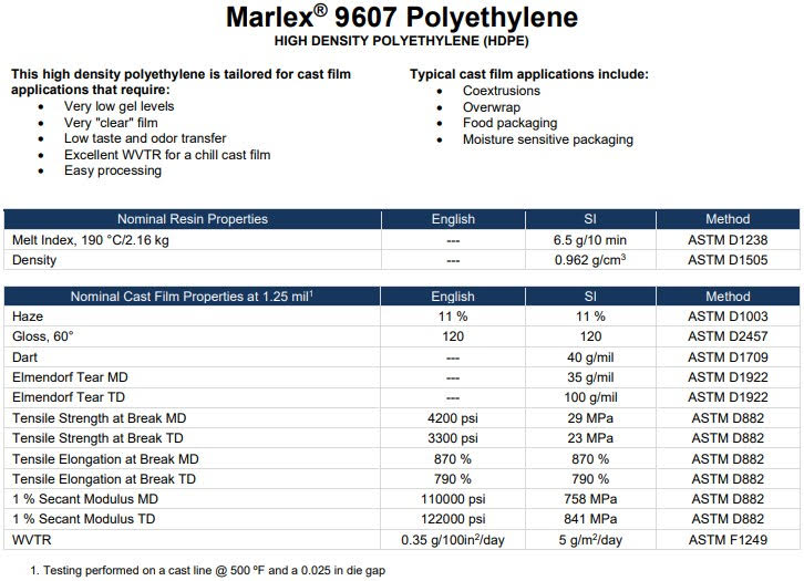 (Shown: HDPE Chevron Phillips Chemical Marlex® 9607)